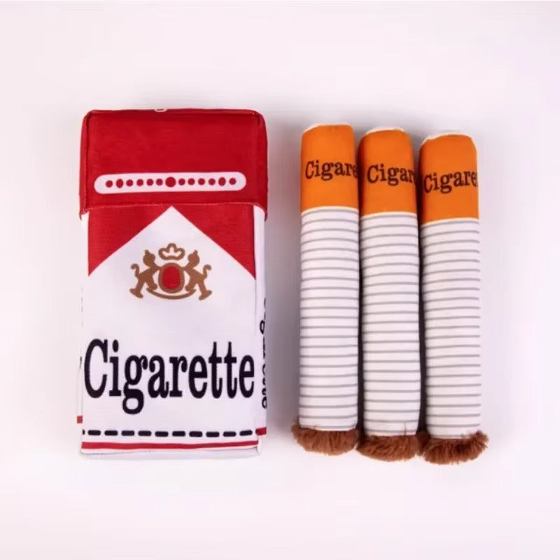 A soft, squeaky pack of plush dog cigarettes.
