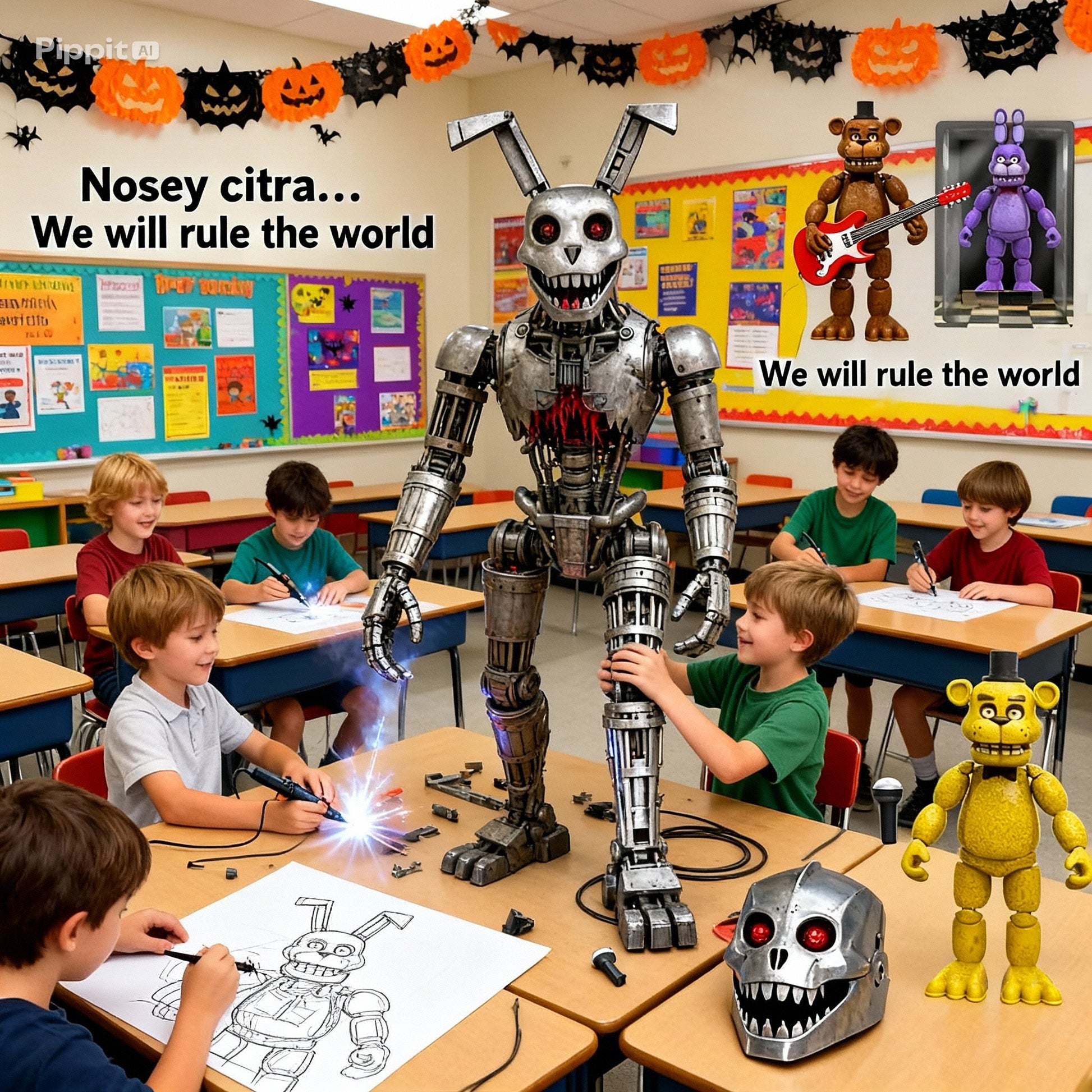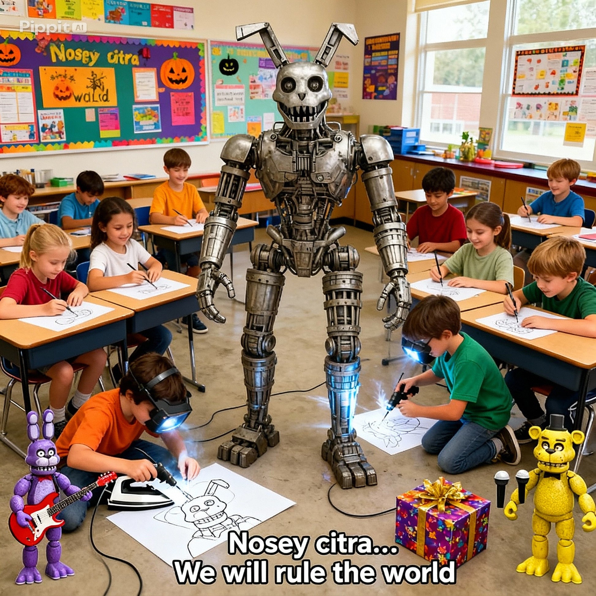 I imagine children working together, some pretending to weld the iron hand, others imagining the leg, and some sketching the frightening but artistic head of the Nosey Animatronic Citra Benjamin Pochurek. In purple and yellow lights, Halloween smiles, encouraging every child to create, to imagine, and to see the world as both joyful and mysterious. With the Nosey Game, my son learns that fear can be transformed into art, and monsters into inspiration. This is my gift: the spirit of creativity.